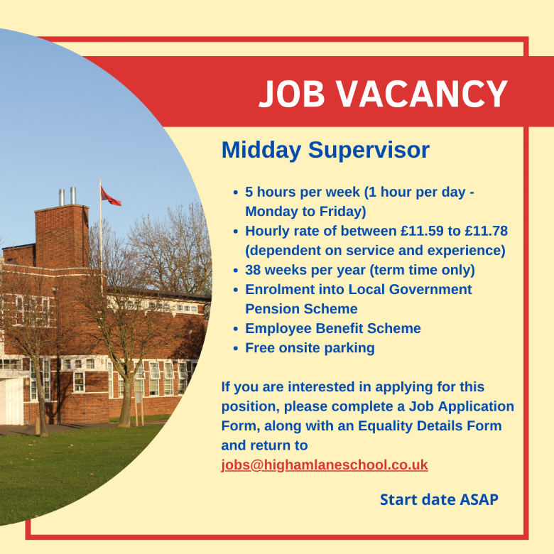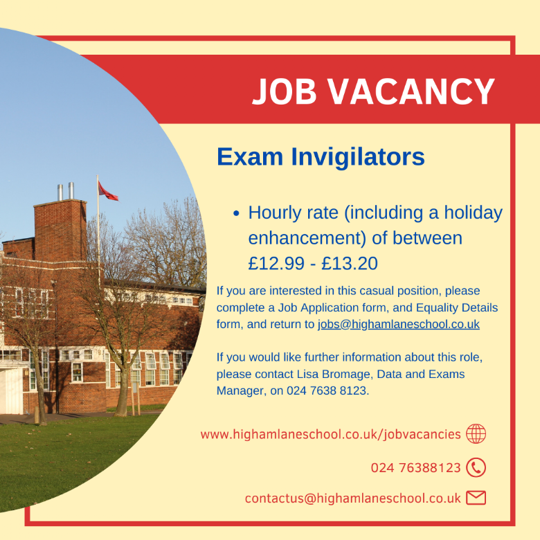 Full applications to job opportunities advertised at Higham Lane School must be submitted by completing the application form below. CVs will not be accepted. Please email your application to jobs@highamlaneschool.co.uk